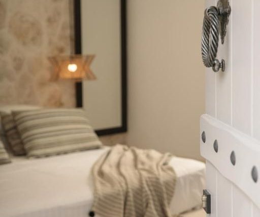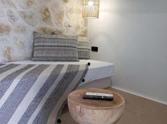 Интерьер: сочетание традиционного греческого стиля и современного комфорта, белые стены, натуральное дерево, текстиль из льна и хлопка