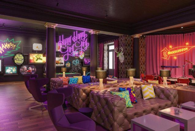 Интерьер: яркий, дизайнерский стиль с мультяшными акцентами, бренд Nickelodeon