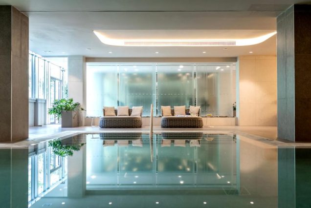 Крытый и открытый бассейны с «встроенным джакузи».