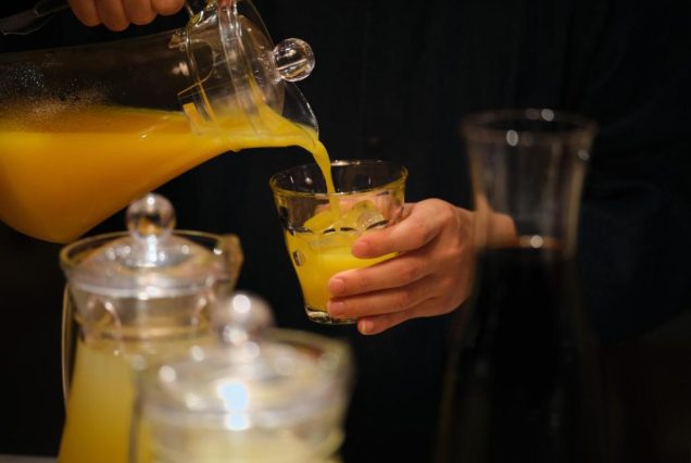 Напитки: свежевыжатые соки, кофе, чай — включены