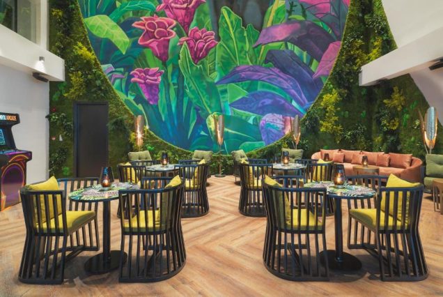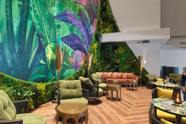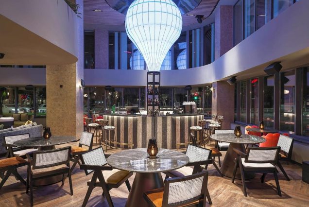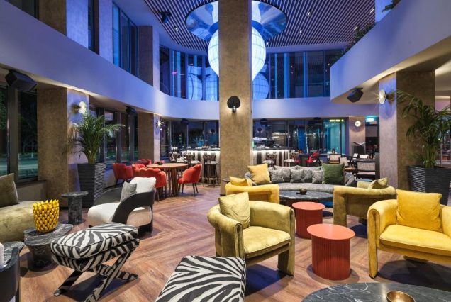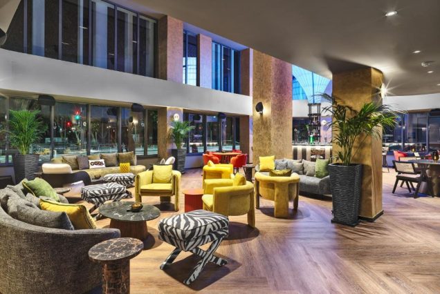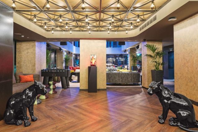 Лобби-зона с арт-объектами и стильными лаунжами