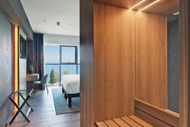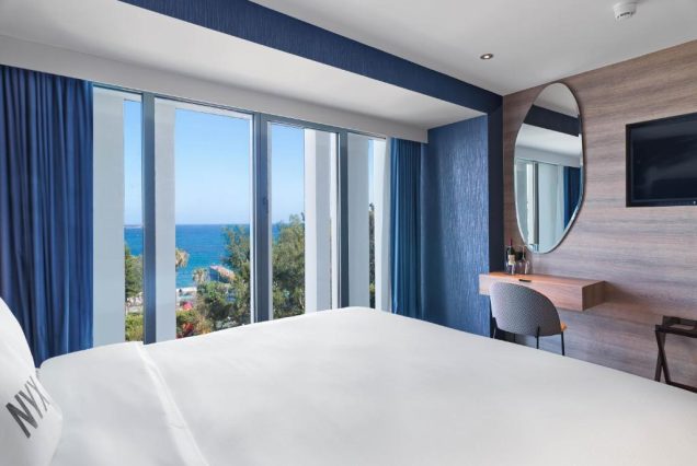 Отель предлагает 189 дизайнерских номеров с панорамными окнами, кофемашинами Nespresso, мраморными ванными комнатами и продуманными деталями интерьера. На крыше — инфинити-бассейн с панорамой на Средиземное море, бар Ethers и ресторан Mizu-Mazu с паназиатской кухней.