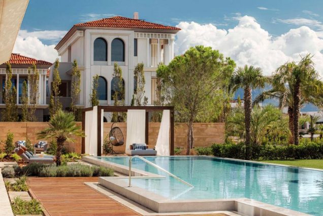 Бассейны: частные бассейны на виллах, infinity-бассейн с панорамой на море, детский бассейн, шезлонги и обслуживание включены