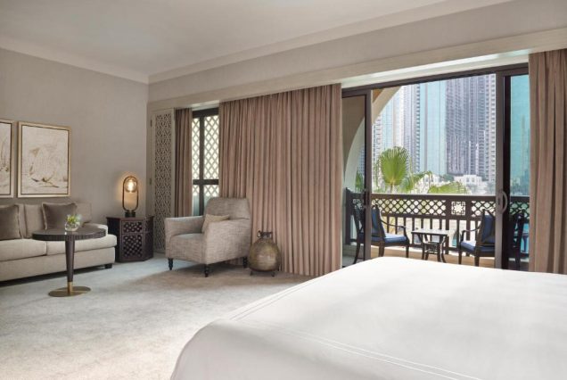 Palace Downtown — это настоящий дворец в современном Дубае, где восточная роскошь сочетается с сервисом уровня мирового класса. Отель расположен на берегу живописного озера Burj Lake и окружён садами, фонтанами и историческими мотивами архитектуры старого арабского дворца. Здесь вы пробуждаетесь под звон капель воды, в интерьерах, где каждая деталь — от кованых люстр до ручной росписи — пропитана стилем и изысканностью. Ваше утро начинается с панорамного вида на Бурдж-Халифу и легендарные фонтаны Дубая. Завтрак — это настоящая гастрономическая церемония, а вечер — ужин на террасе с видом на сверкающий центр города. Palace Downtown — для тех, кто ценит индивидуальность, комфорт и редкое сочетание уединения и жизни в самом центре мегаполиса. Номера оформлены в арабском стиле с тёплым деревом, резьбой по камню и тканями ручной работы. Утончённые детали интерьера, мягкий свет, глубокие ванны, балконы с видом на фонтан — всё это создаёт атмосферу восточной сказки. Вечером вы можете пройтись по набережной к Dubai Mall, а утром — насладиться СПА-ритуалами с аргановым маслом и ароматом ладана.