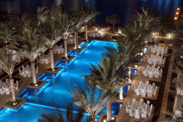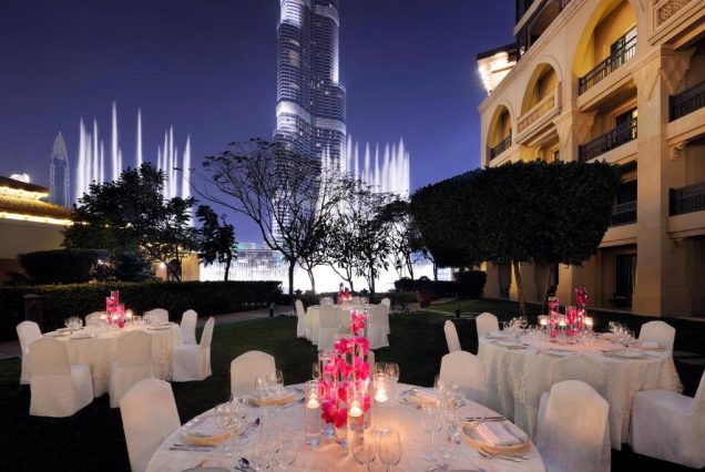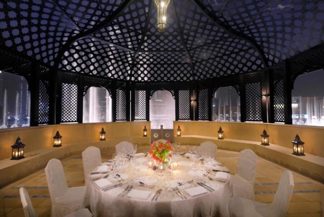Локации для фото: терраса у бассейна с видом на Бурдж-Халифу, ужины с фонтанами, балконы с резьбой