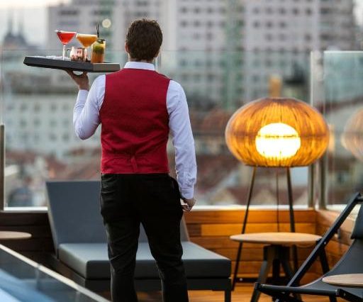 — Вечерний коктейль в баре отеля на крыше с видом на дворец