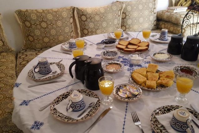 — Завтрак с домашними марокканскими лепёшками, свежевыжатыми соками и фруктами