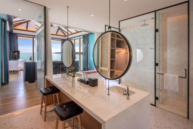 Виллы курорта — просторные, с собственной террасой, бассейном и кухней. Интерьер — в современном азиатском стиле: светлые тона, натуральные материалы, панорамные окна. Все виллы оснащены кондиционером, спутниковым ТВ, кофемашиной, рабочим столом, обеденной зоной и большой ванной комнатой с ванной и душем. Wi‑Fi работает по всей территории, в том числе и на пляже.