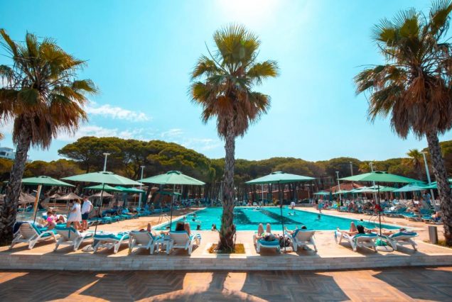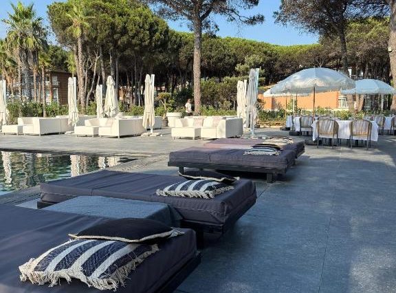 Просторная территория вокруг отеля просто великолепна. Персонал, от сотрудников ресепшена и ресторанов до всей команды, был превосходен. Два больших бассейна и один детский. Все они отличного размера. Важно отметить, что один бассейн был наполнен морской водой, а второй – наполовину. Впервые такое встречалось в отелях Албании. Вишенкой на торте стали сосны, растущие по всей территории курорта. Это того стоило. Я бы возвращался сюда каждый раз, когда у меня будет такая возможность.
