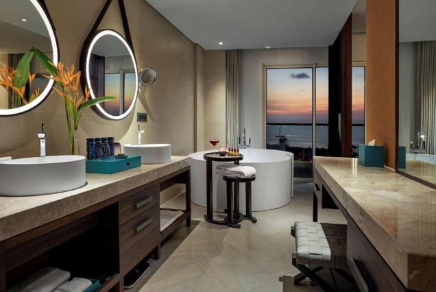 красивая территория, большой чистый бассейн. пляж отличный, мелкий белый песок, вход в море мягкий, без камней и сюрпризов. завтрак разнообразный , готовят вкусно, относительно других отелей. Ресторан недешевый, но и не супер дорогой. готовят тоже хорошо. В среднем 50$ за ужин 2 взр и ребенок, без излишеств( алкоголя и морепродуктов). Вечером приносят сладости. номер имел систему умный дом. Унитаз по японской системе, с пультом, подогревом сиденья и тд. Огромный джакузи в номере и выход к бассейну