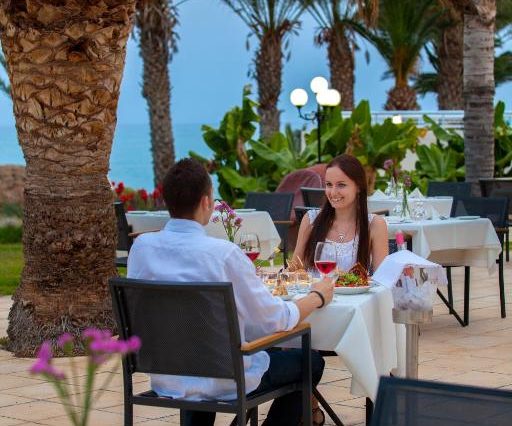 Queens Bay Hotel 4★ — это уютный и спокойный отель, расположенный прямо у моря в зелёной бухте Киссонерга, в 10 км от центра Пафоса. Он идеально подойдёт тем, кто ищет тишину, комфорт и атмосферу настоящего курортного отдыха без суеты. Территория отеля утопает в зелени, а с большинства номеров и с панорамной террасы открываются потрясающие виды на море и закаты. В отеле есть открытый бассейн с лежаками, крытый подогреваемый бассейн, теннисный корт, фитнес-зал, сауна и массажный кабинет. По вечерам проходят живая музыка и лёгкие анимационные шоу. Номера простые, но чистые и светлые, с кондиционером, балконом, бесплатным Wi-Fi и возможностью выбрать вид на море. Завтраки включены — шведский стол с горячими блюдами, фруктами, выпечкой и напитками. В отеле есть ресторан Cassiopia с тематическими ужинами, бар у бассейна и лаунж-бар. В пешей доступности — таверны, кафе, пляжи Vardas и Potima, остановка автобуса до центра Пафоса. Queens Bay выбирают за уют, честный сервис, хорошую кухню и тишину у моря — здесь легко забыть о повседневности и просто отдыхать.