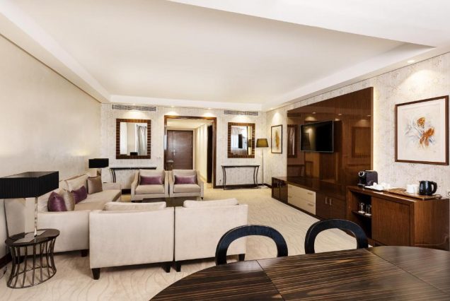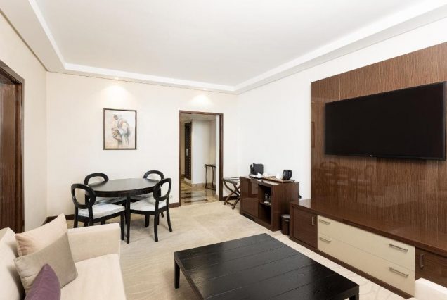 Оснащение: Smart TV, Bluetooth-колонка, кофемашина Nespresso, чайный набор, мини-бар, сейф, утюг