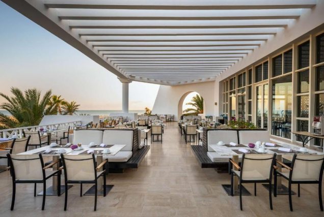 Основной ресторан: Ceramique Restaurant — блюда международной и тунисской кухни с панорамным видом на море; подача с 07:00 до 10:30.