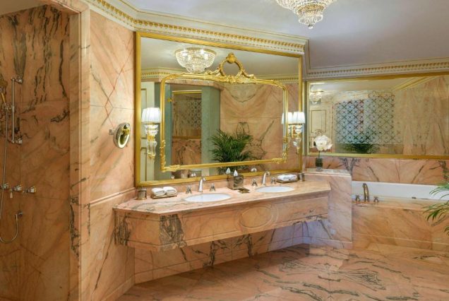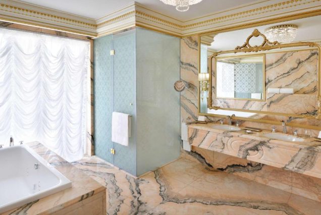• отделка из мрамора, отдельная ванна и тропический душ