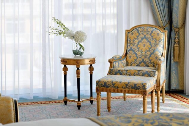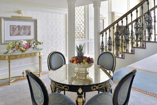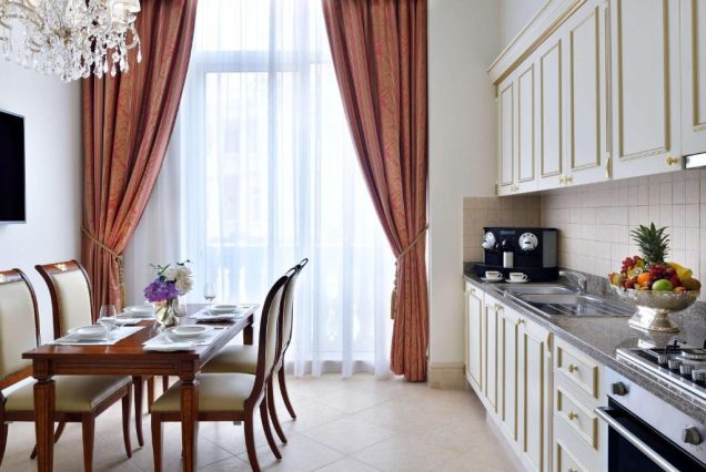 — Интерьер: сочетание арабских мотивов и современного дизайна, натуральные ткани, деревянные и мраморные акценты