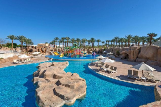 Reef Oasis Beach Resort 5★ — один из самых популярных курортов Шарм-эль-Шейха, идеально подходящий для комфортного пляжного отдыха, семейных каникул и активного релакса. Отель расположен на фоне Синайских гор и предлагает просторные современные номера в нейтральных тонах, оборудованные кондиционером, спутниковым телевидением и всеми удобствами. На территории работает 6 ресторанов, где подают блюда итальянской кухни, гриль и фирменные международные блюда, а также 10 баров, некоторые из которых открыты днём у бассейнов, а вечером превращаются в площадки с развлекательными шоу. Гости могут отдыхать на шезлонгах у бассейнов, посещать современный фитнес-центр или расслабиться в СПА-зоне с джакузи, сауной и массажным кабинетом. Для детей открыт весёлый клуб Nemo’s с анимацией и играми. Отель удобно расположен в 14 км от международного аэропорта Шарм-эль-Шейха, трансфер занимает около 20 минут. Это идеальное место для тех, кто ищет качественный сервис, отличную кухню, красивый риф и насыщенный отдых на Красном море.