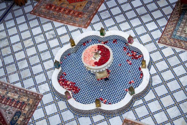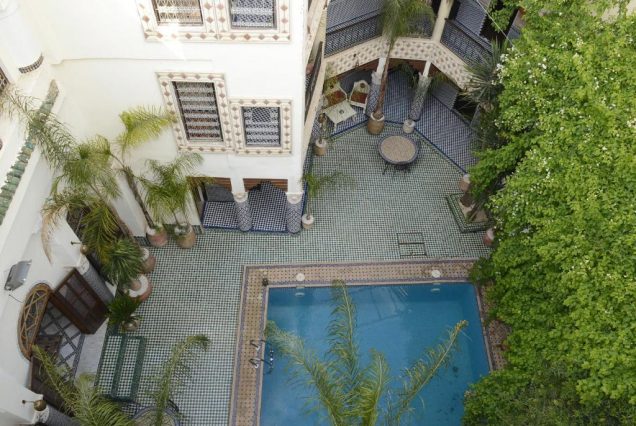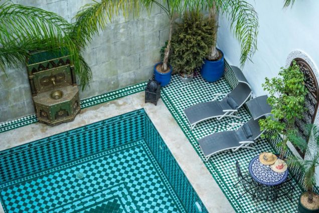 Локации для фото: крыша с видом на Медину, бассейн с восточным декором, терраса с вечерним светом, традиционные ковры и лампы