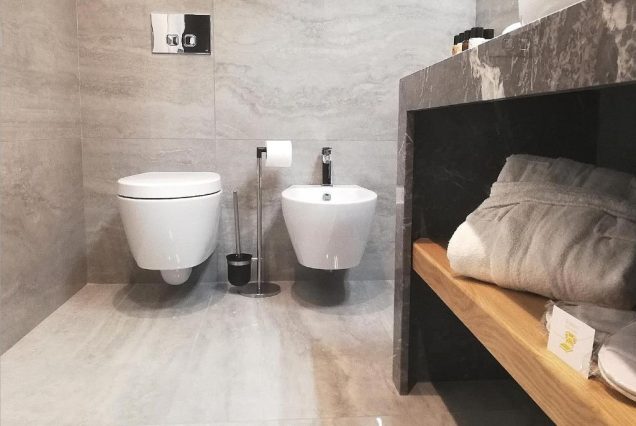— просторная ванная с душевой кабиной, халаты, тапочки, фен, итальянская косметика