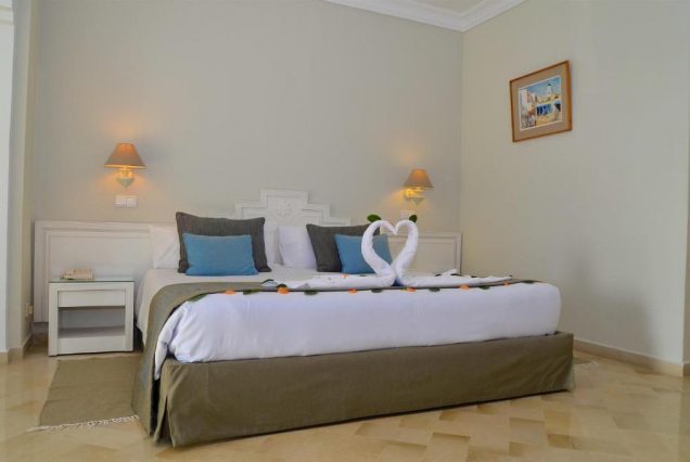 — Welcome-фрукты и тунисские сладости в номере, отдых у бассейна или на террасе с видом на сады