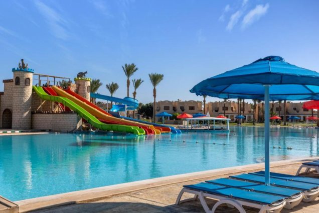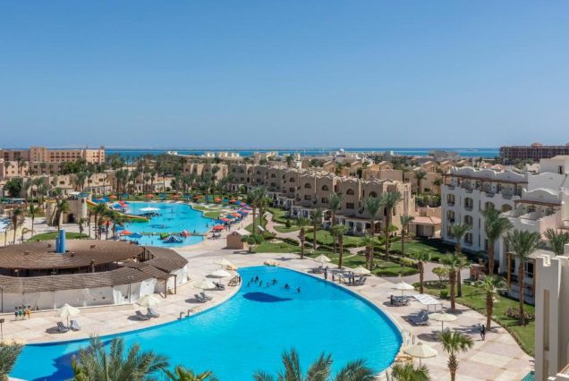 Royal Lagoons Resort & Aqua Park 5★ — спокойный семейный отдых рядом с пляжем и аквапарком. Курорт расположен в центре Хургады, среди пальм и бассейнов, вблизи променада и лагуны. Здесь царит расслабленная атмосфера: просторные номера с балконами, множество зон для отдыха, питание по системе «всё включено». До пляжа — 5 минут пешком или на бесплатном шаттле. На территории: аквапарк, бары, вечерние шоу, мини-клуб и спа. Всё создано для семей и пар, кто хочет безмятежный отдых с морем, солнцем и комфортом.