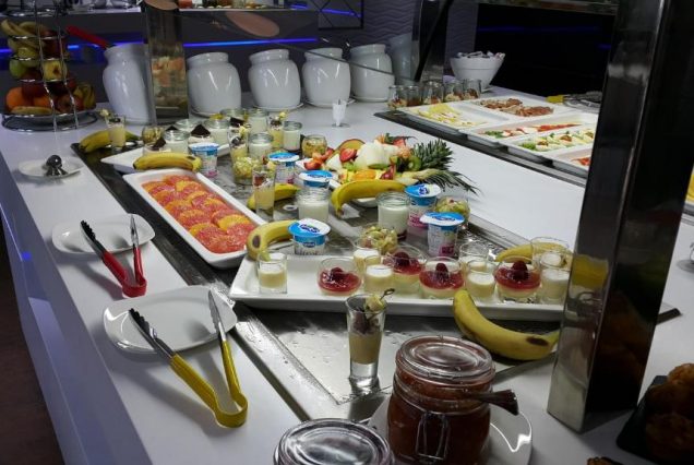 Меню: свежие фрукты, омлеты с выбором наполнителей, круассаны, хлеб из пекарни отеля, мюсли, зерновые боулы, органический чай и кофе.