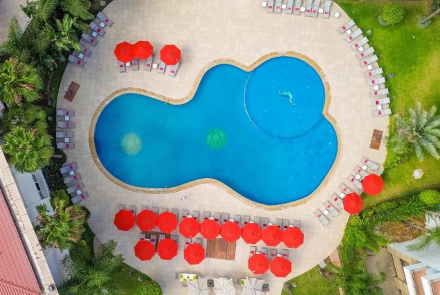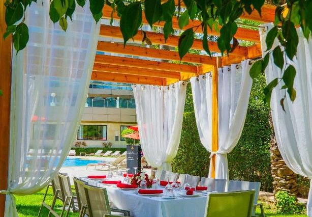 Локации для фото: rooftop pool с видом на город, ужины на террасе, мозаичные детали интерьера, зелёные уголки отеля.