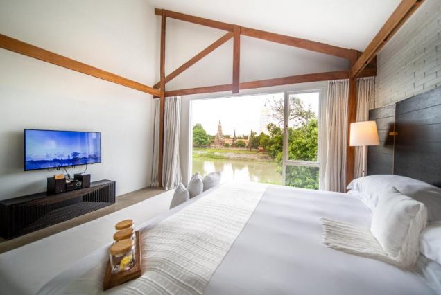 Действительно крутая гостиница в фантастическом месте на восточном берегу реки Чао Прайя напротив храма Ват Пхуттхаисаван на восточном берегу Аюттхаи – посмотрите все наши «так называемые художественные» фотовариации этого храма, сделанные прямо из нашего номера!! Достаточно физически большая комната с красивой эстетикой, массивной ванной, обильным душем и огромным кушеткой. Прекрасное окно от пола до (высокого) потолка. Очень хороший динамик Marshall Bluetooth был отличным для воспроизведения нашей музыки. Персонал был очень доброжелательным и полезным, чтобы узнать о маршрутах в город и т.д. В ресторане на берегу реки прекрасная пища, он непосредственно примыкает к реке и действительно хороший вид на Wat с другой стороны. Зона у бассейна хорошая, хоть и небольшая и открытая для большинства комнат, выходящих на нее вместе с полупубличным переходом в ресторан
