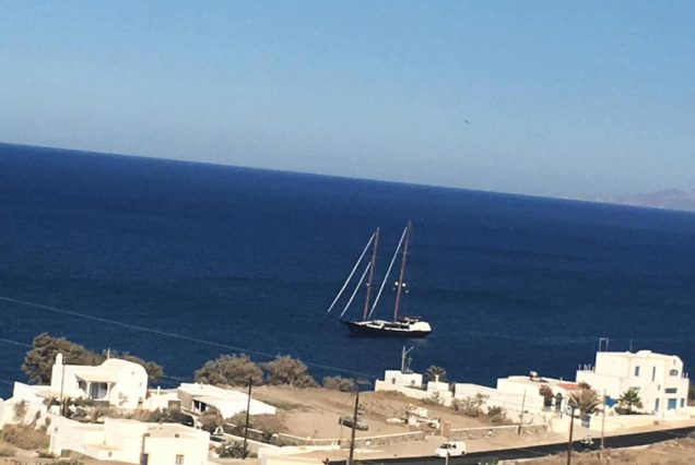 — Полдень — прогулка на катере вокруг Санторини, посещение пляжей Красного и Чёрного песка