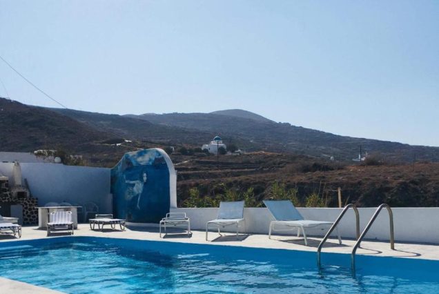 Локация: остров Санторини, район Имеровигли, на утёсе с видом на кальдеру и Эгейское море.