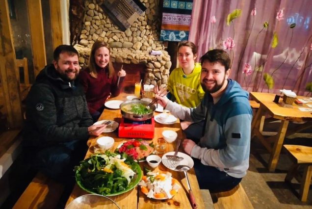 — Обед в ресторане в Сапе: локальный hot pot и сок из зелёного манго