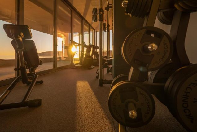 Фитнес: мини-зал с оборудованием, коврики, утренние зарядки