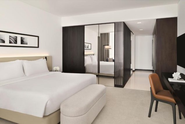 Sheraton Grand Hotel, Dubai — это воплощение урбанистического шика и премиального комфорта в самом центре делового и культурного Дубая. Расположенный на знаменитой Sheikh Zayed Road, отель предлагает панорамные виды на городские небоскрёбы, Бурдж-Халифу и Арабский залив. Здесь каждый день начинается с вида на сверкающий мегаполис и чашки ароматного кофе у окна. Стильные интерьеры в духе современной классики, дизайнерская мебель, мрамор и стекло, приглушённые тона — всё создаёт атмосферу уравновешенной элегантности. Это идеальный выбор для ценителей космополитичного образа жизни, бизнес-гостей и тех, кто любит совмещать отдых с урбанистической эстетикой. Вас ждёт бесшовный сервис, приватность, гастрономические впечатления и полный доступ к лучшим локациям Дубая. СПА с видом на Бурдж-Халифу, вечерние коктейли у infinity-бассейна на крыше, гастроужины и авторский дизайн номеров делают Sheraton Grand Hotel настоящим символом высококлассного городского отдыха.
