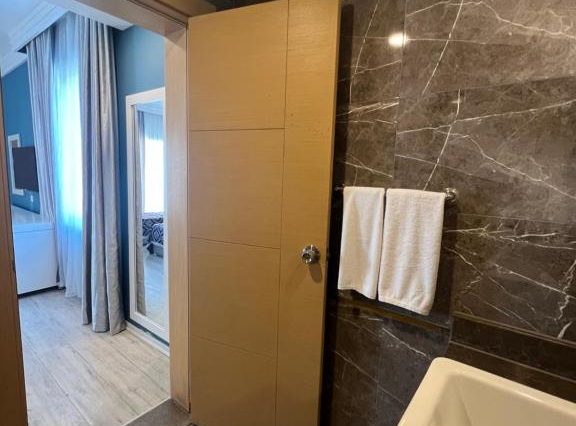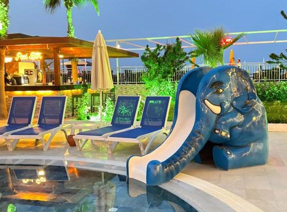 Отель предлагает отличное расположение с красивым видом на море и веселыми водными горками, которые дети просто обожали. Персонал был дружелюбным и гостеприимным, а общая атмосфера очень расслабляющая. Номера были комфортабельными, всё чисто и хорошо ухожено. Мы определенно вернемся сюда и настоятельно рекомендуем этот отель семейным парам!