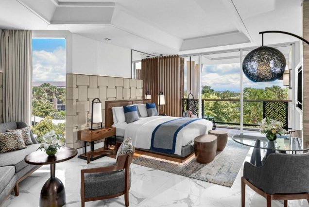 Sofitel Bali Nusa Dua Beach Resort 5★ — это изысканный курорт на первой линии океана в престижной зоне Нуса-Дуа, сочетающий французскую элегантность с балийским гостеприимством. Отель утопает в зелени ухоженных садов, с прямым доступом к пляжу и живописной набережной. Интерьеры номеров оформлены в современном стиле с акцентами на традиционные балийские детали, просторные и светлые, большинство — с видом на океан, лагуну или сады. На территории — несколько открытых бассейнов, включая лагуну, окружённую пальмами, роскошный спа-центр SoSPA, фитнес-клуб, клуб для детей и семейные зоны, а также лаунжи для уединённого отдыха.