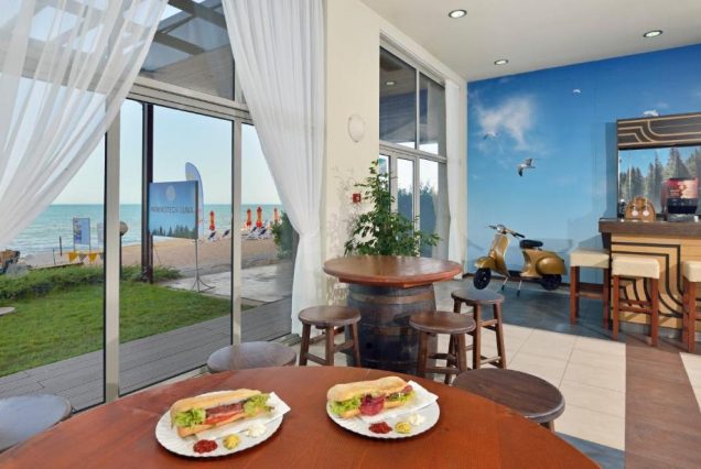 Основной ресторан: Sol Luna Restaurant — средиземноморская и болгарская кухня с панорамой на море; подача с 07:00 до 22:00