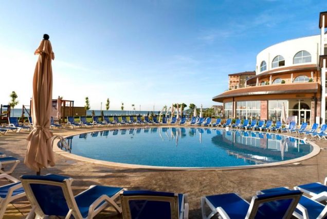 Локация: Болгария, Солнечный берег, первая линия моря, окружён зеленой зоной и пляжами
