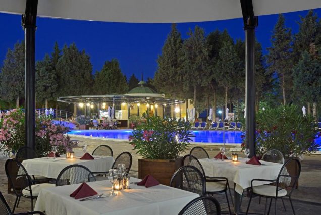 Основной ресторан: The Palace Main Restaurant — международная и болгарская кухня с шоу-кейтерингом, работа с 07:00 до 22:00