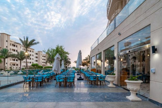 Отель утопает в пальмах и зелени, а с пляжа открывается открыточный вид на Красное море. Белоснежные шезлонги, восточная архитектура, коралловые отмели и закаты, отражающиеся в бассейне — каждый кадр будто создан для открытки. Фото-зоны на пляже, у фонтана и в арках отеля — любимые места гостей.