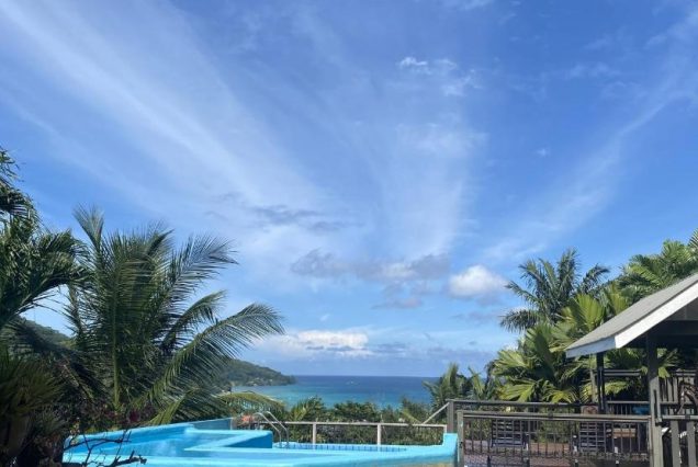 — Завтрак на террасе с видом на океан: свежие фрукты, выпечка и сейшельский кофе