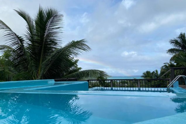— Приветственный коктейль и свежие фрукты под пальмами у бассейна