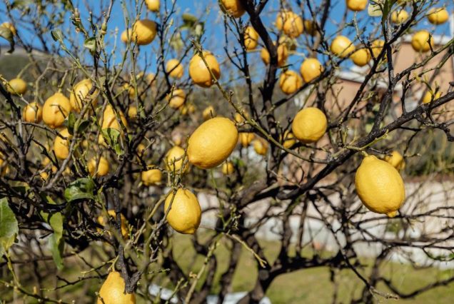 Вид: зелёный сад, частично море и горы вдалеке