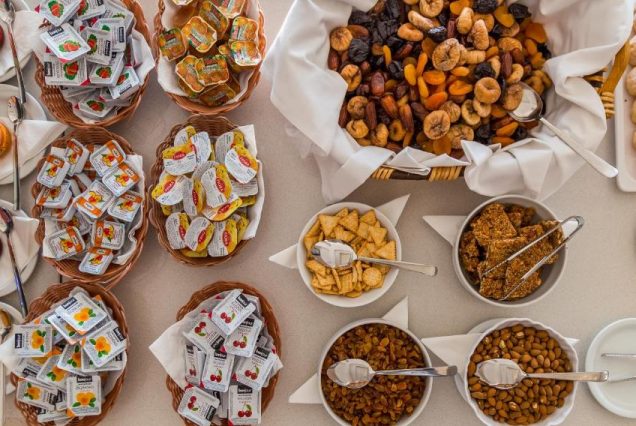 Меню: свежие фрукты, выпечка, яйца, сыры, греческий йогурт, мюсли, круассаны