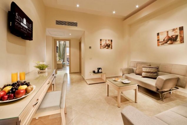 Sunrise Crystal Bay Resort — Grand Select — это райский уголок, где каждая минута наполнена светом и спокойствием. Утро встречает вас нежным солнечным светом, льющимся в ваш номер с видом на бескрайние просторы Красного моря и живописные горы Синайского полуострова. Здесь царит атмосфера уюта и гармонии, где можно насладиться чашкой свежесваренного кофе на балконе, вдыхая свежесть морского бриза и аромат местной флоры. Этот отель создан для тех, кто стремится к комфортному отдыху и максимальному расслаблению. Просторные номера с элегантным интерьером, натуральные материалы и теплые цвета создают атмосферу домашнего уюта и покоя. Здесь можно провести время у огромных бассейнов, пройтись по частному пляжу с белым песком или открыть для себя уникальные подводные красоты кораллового рифа. Вечер — время романтических ужинов на террасе с видом на закат и звёздное небо, наполненное атмосферой восточной магии. SPA-центр предлагает премиальные процедуры и массажи с применением натуральных масел и эксклюзивных средств, а ночные прогулки по территории отеля подарят ощущение полного расслабления и единения с природой. Sunrise Crystal Bay Resort — Grand Select — это не просто отдых, это возможность обновиться, напитать тело и душу, уйти от повседневных забот и наполниться жизненной энергией.