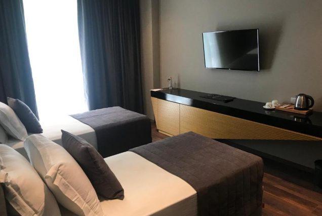 Оснащение: кондиционер, телевизор, сейф, мини-бар, Wi-Fi, рабочий стол, набор для чая и кофе