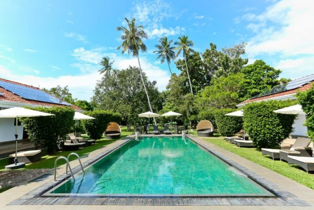 Локация: Шри-Ланка, Южное побережье, район Матара — на берегу океана, окружённый пальмами и зеленью