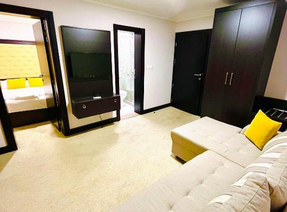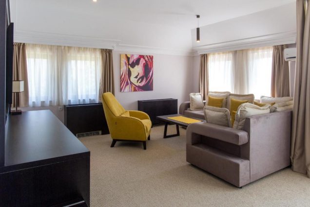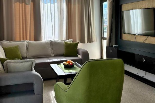 Оснащение: Smart TV, кофемашина, Bluetooth-колонка, мини-бар, сейф