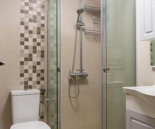 Санузел: ванна с панорамой, душевая кабина, косметика на травах