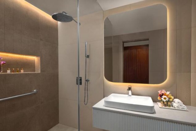 Санузел: ванна с гидромассажем, душевая кабина, премиальная косметика