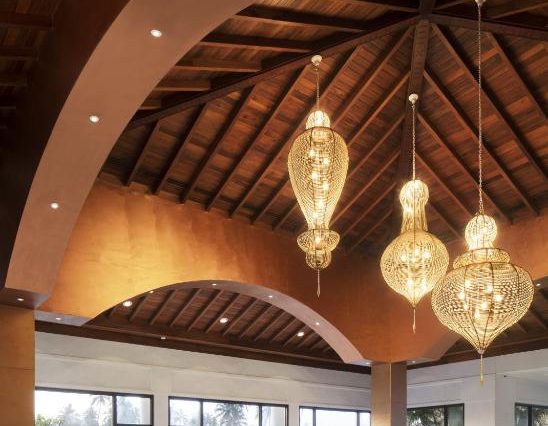 Интерьер: сочетание современного дизайна с элементами традиционного шри-ланкийского стиля, натуральные ткани, деревянные акценты