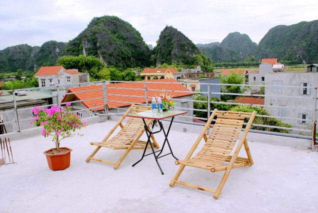 Панорама и архитектура: живописные рисовые поля, карстовые горы, традиционные вьетнамские постройки, просторные веранды с видом на природу.